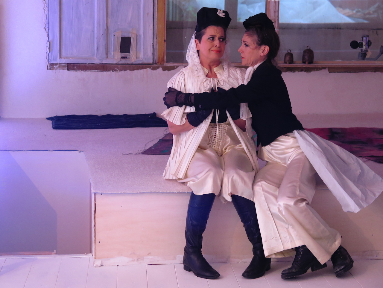 An IN SITU collaborative performance by and with Rachel Cohen and Nadine Sures performed and produced in January 2019 at La Obra, Bagnolet, France. An investigation of theatrical worlds in which movement, sound, narratives and architecture interlace to create a surrealist portrait of urban life.